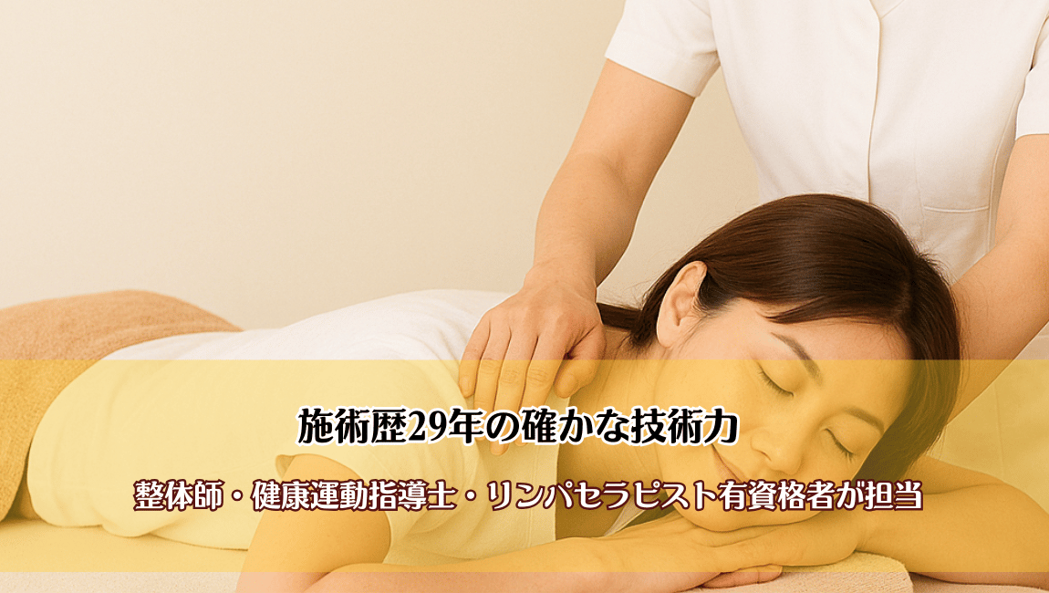 主な資格:整体師・リフレクソロジー・リンパセラピスト・健康運動指導士・流水運動指導士 その他。
